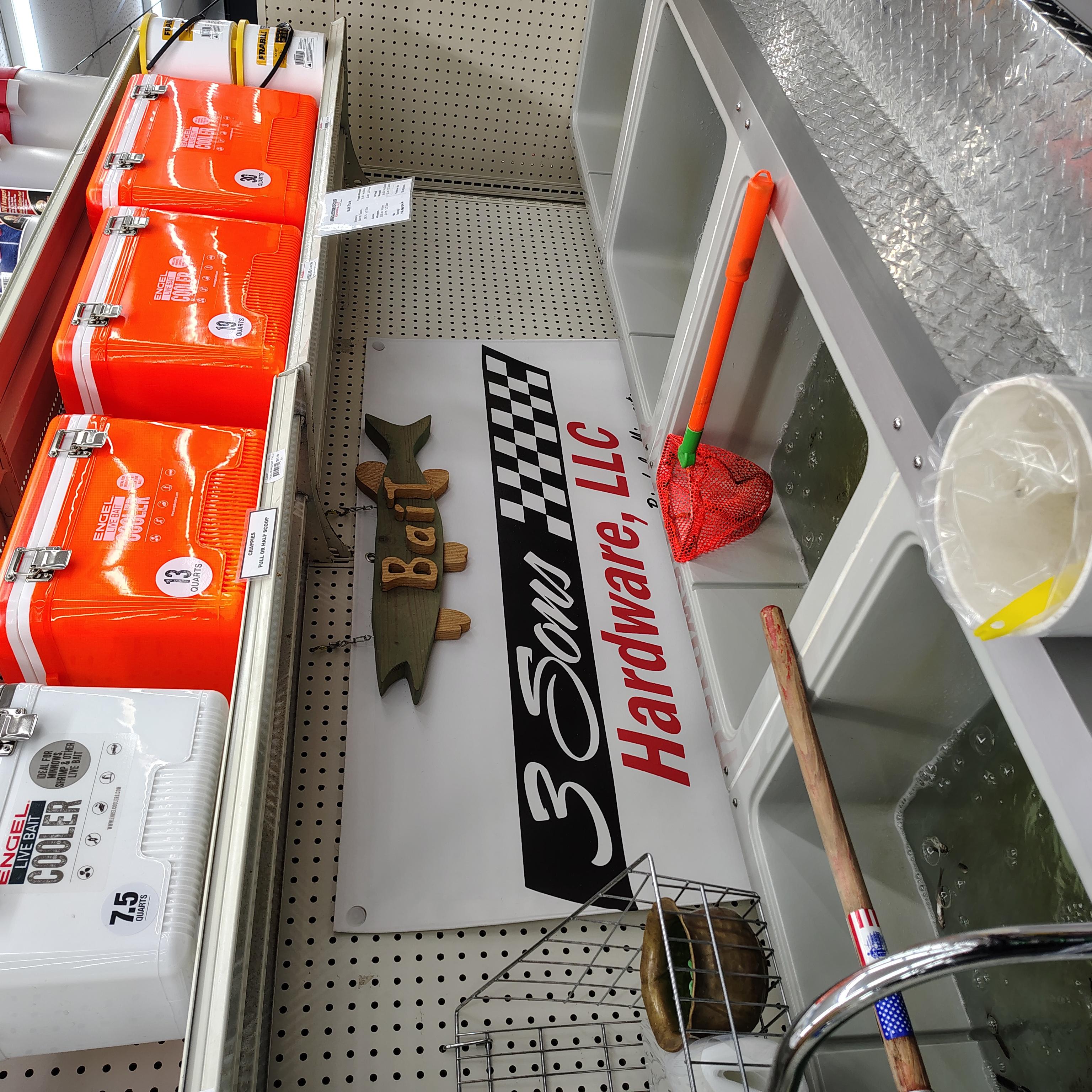 3 Sons Hardware is full service hardware store for your lawn, garden, tools, painting supplies, plumbing and other household needs. In addition, we offer small engine repair, window screen repair, live bait and so much more! We are conveniently located right off Hwy 10 in Big Lake and have a large parking lot for campers, RVs and boats. Big box options with small town charm.
